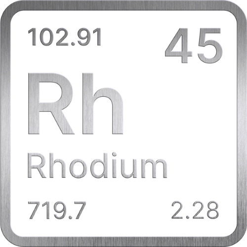 Elemental Symbol: (Rh) Named after the Greek work for rose "rhodon", this pure white metal is plated to all white gold jewelry. And some sterling silver jewelry as well.