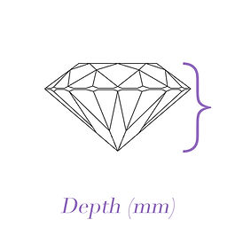 Measurement of the height of the gemstone. Expressed as a percentage, it is calculated by dividing the height by the width (average girdle diameter) of the gemstone. Ideally, the depth of the stone will not be too shallow nor too steep. Different cuts call for different ranges of depth percentage.