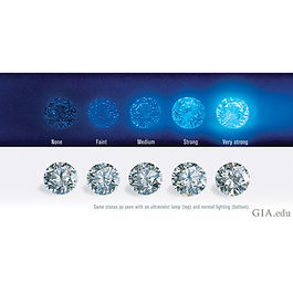 The glow that can sometimes be emitted from a stone when exposed to UV light. Can appear in a variety of colors including blue, yellow, and even orange.