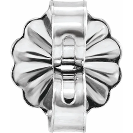 The component of a stud earring that is pierced by the post and allows it to sit securely on one’s ear. As with the post, the back can function by friction or screw.