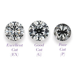 A grade assigned based on 12 factors that help determine how well a round diamond is finished. Cut grades are Excellent, Very Good, Good, Fair, or Poor. This directly affects the brilliance, fire, scintillation, and overall aesthetic appeal of the diamond.