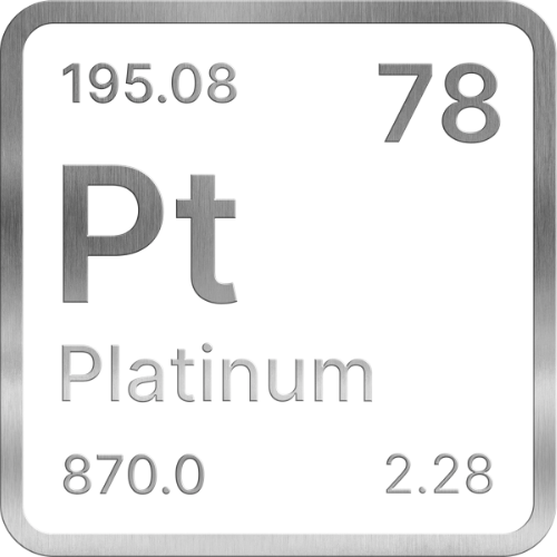 Elemental symbol: (Pt) Derived from the Spanish word, ‘platina’, meaning “little silver”. For jewelry, it has a fineness of 90%-95%.